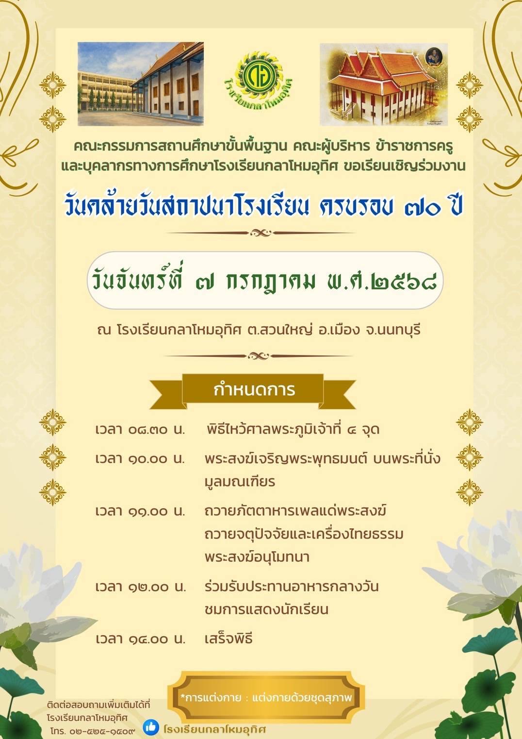 ประชาสัมพันธ์เชิญร่วมทำบุญ เนื่องในวันสถาปนาโรงเรียนกลาโหมอุทิศ ครบรอบ 70 ปี