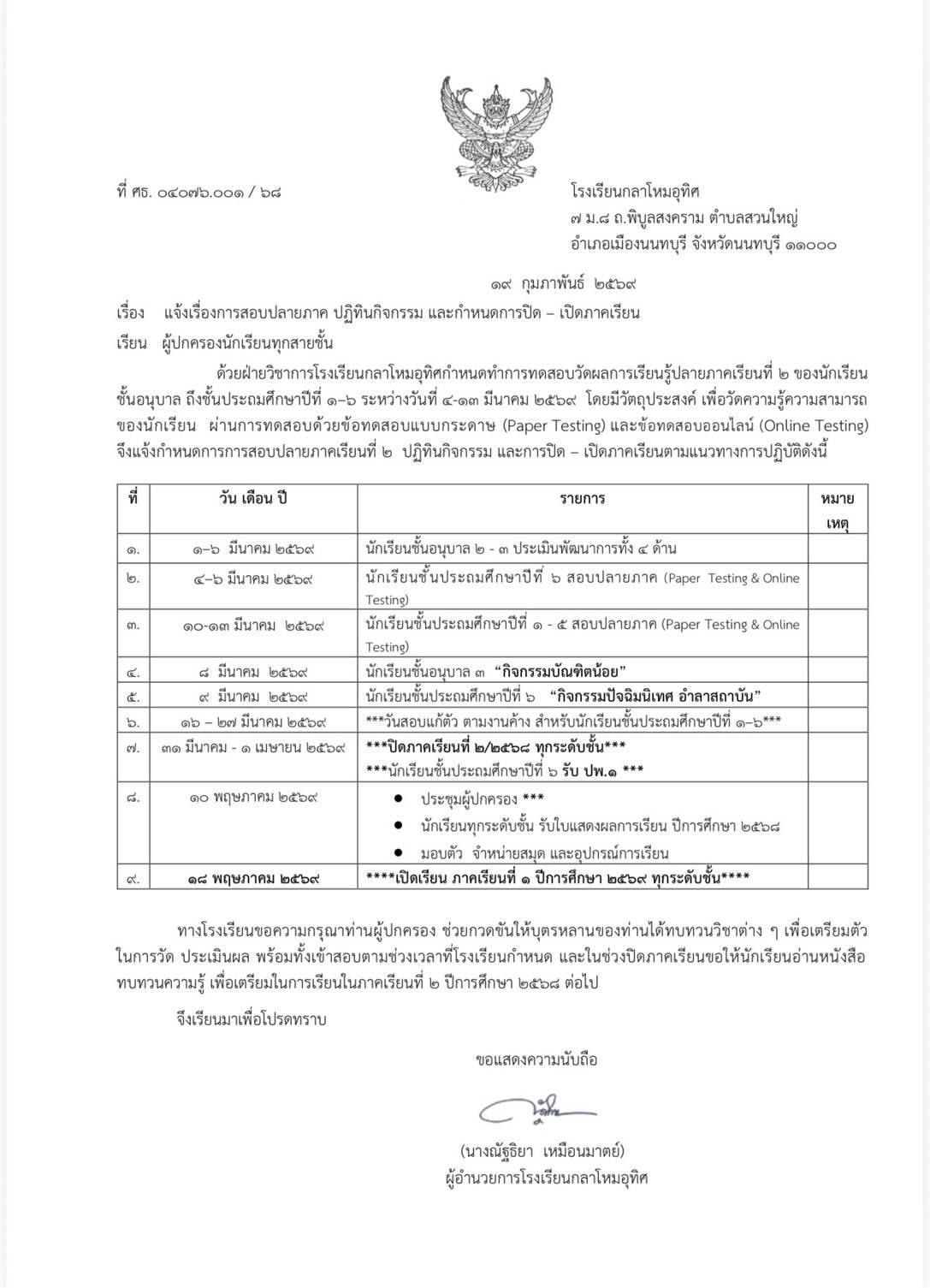 กำหนดการสอบปลายภาคเรียนที่ 2 ปีการศึกษา 2568